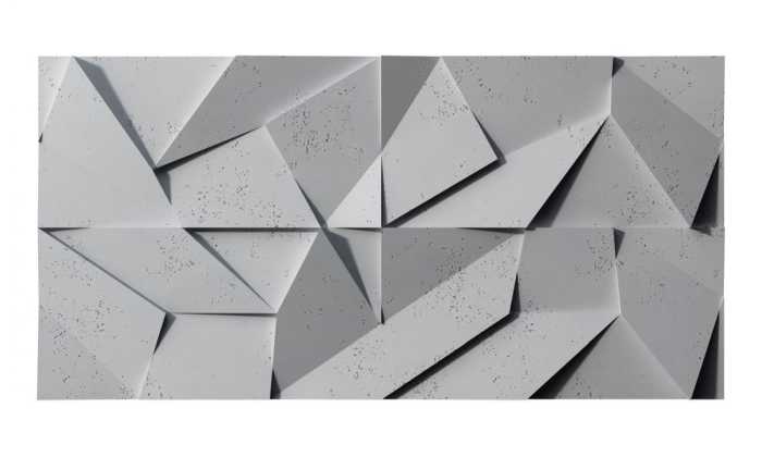 PB 06 - ORIGAMI - Panel tvoří fragmenty různých velikostí. Nepravidelná kompozice prvků imituje umění origami. Trojrozměrná struktura panelů umožní vytvořit originální kompozice a jedinečné prostorové struktury. Model PB06 svým designem navazuje na modernistické řešení uspořádání systému.